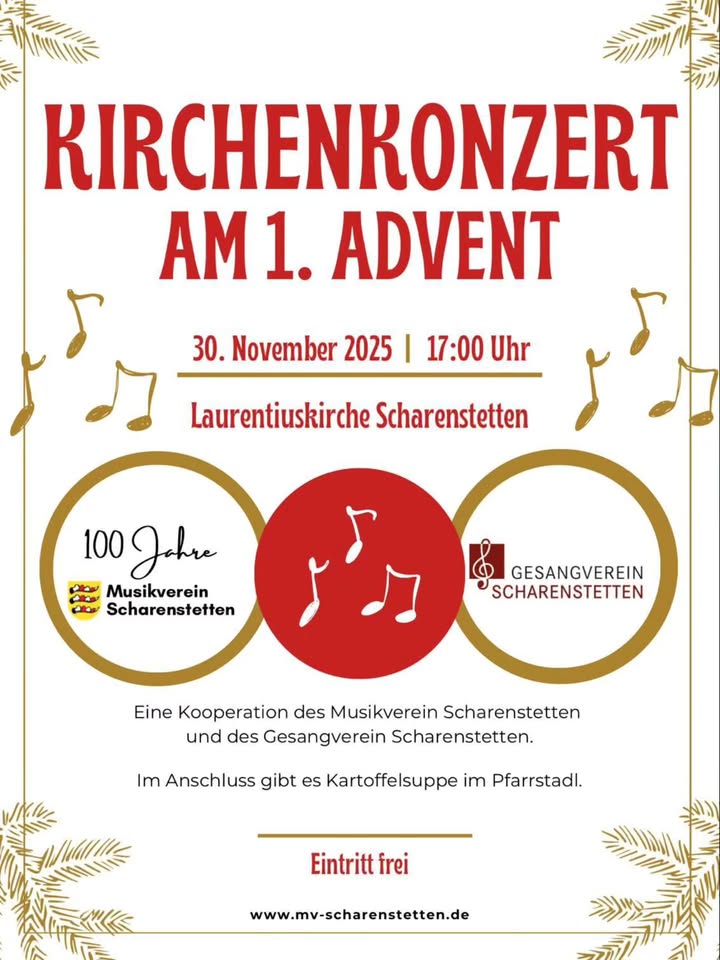Der Musikverein Scharenstetten und der Gesangverein Scharenstetten laden am 1. Advent 30.11. um 17 Uhr zum Konzert in der Laurentiuskirche ein #musikvereinscharenstetten #gesangsvereinscharenstetten #adventskonzert #kirchengemeinde